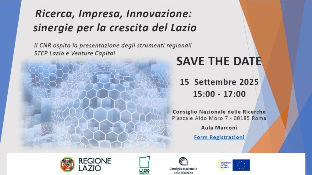 Sono aperte le registrazioni al workshop: “Ricerca, Impresa, Innovazione: sinergie per la crescita del Lazio”, organizzato dal CNR e Lazio Innova.